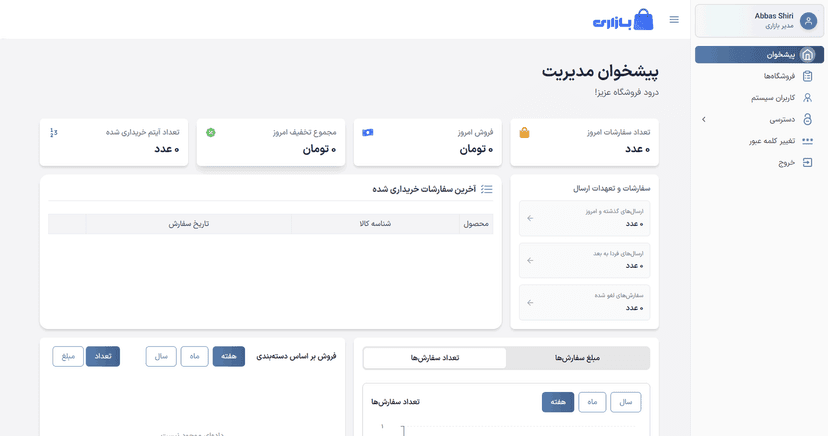 پنل مدیریتی پیشرفته برای مدیریت کامل سایت و سفارشات