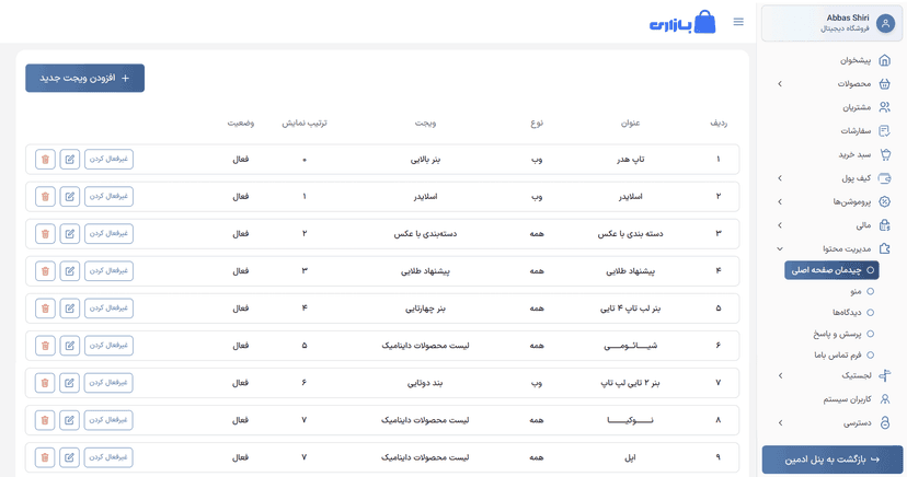 با قابلیت ویجت بازاری صفحه اصلی فروشگاه خود را مطابق نیاز خود شخصی سازی کنید.
